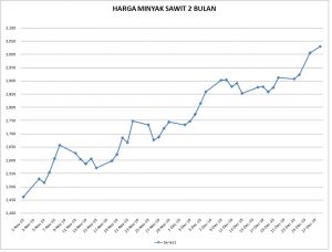 Adapun pada dua bulan terakhir terlihat harga minyak sawit rally :