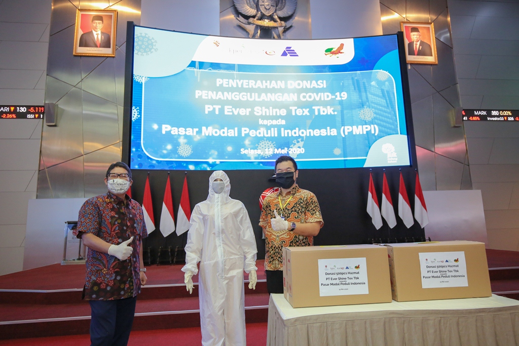 (Vibiznews – IDX) Dalam rangka membantu program Pemerintah untuk menanggulangi Pandemi Covid-19 , PT Ever Tex Tbk pada hari ini, Selasa (12/05/2020) menyerahkan donasi berupa Alat Pelindung Diri (APD), hazmat sebanyak 500 pcs kepada Pasar Modal Peduli Indonesia (PMPI), sebagai salah satu bentuk kepedulian kami selaku emiten yang tercatat pada Bursa Efek Indonesia.
