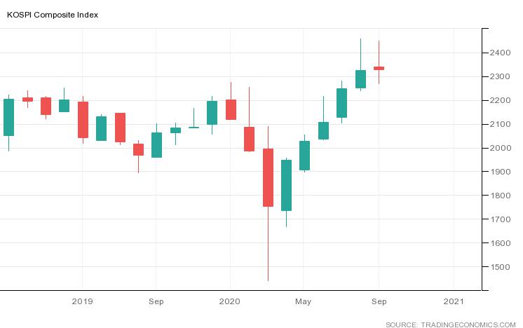 (Vibiznews – Indeks) – Perdagangan saham di bursa Korea Selatan hari Rabu (30/9/2020) ditutup hingga akhir pekan oleh karena libur publik negara tersebut yaitu libur Chuseok. Melihat pergerakan sepanjang bulan September, indeks Kospi ditutup menguat moderat setelah 5 bulan berturut sebelumnya cetak gain yang sangat tinggi.