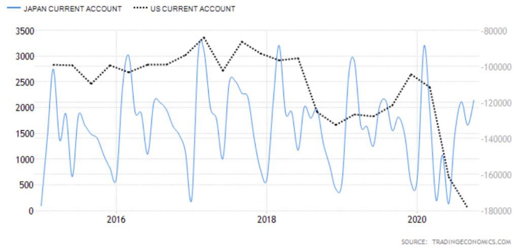 GAMBAR 2: Grafik Perbandingan Current Account Jepang dan Amerika Serikat.