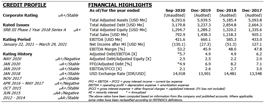 (Vibiznews – Bonds & Mutual) PEFINDO menegaskan peringkat “idA+”untuk Obligasi Berkelanjutan III PT Medco Energi Internasional Tbk (MEDC)Tahap I tahun 2018 Seri A dengan pokok senilai Rp282,5 miliar yang akan jatuh tempo pada tanggal 29 Maret 2021. Perusahaan akan melunasi obligasi yang akan jatuh tempo tersebut dengan menggunakan kas dari penerbitan obligasi berdenominasi US dollar yang telah ditaruh dalam escrow account. Per November 2020, Perusahaan memiliki USD73,8 juta dari hasil penerbitan obligasi berdenominasi US dollar yang ditujukan untuk melunasi seluruh obligasi yang akan jatuh tempo di 2021.