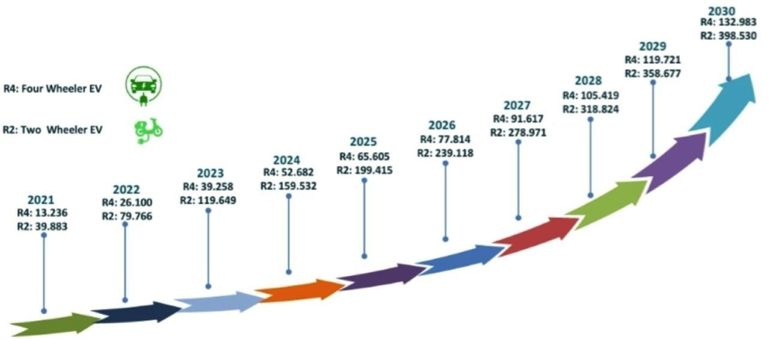 Pemerintah sendiri menargetkan pembelian mobil EV yang semakin bertambah dari tahun ke tahun, hingga pada tahun 2030 untuk roda empat mencapai 132.983 unit sedangkan roda dua mencapai 398.530 unit. Untuk mempercepat permintaan Industri EV, Pemerintah akan menetapkan peraturan tentang Roadmap Pembelian EV. Roadmap ini bertujuan untuk mengurangi ketergantungan impor minyak dalam negeri untuk mencapai penggunaan energi terbarukan. Pemerintah juga memberikan insentif fiskal dan non fiskal bagi konsumen dan produsen EV.