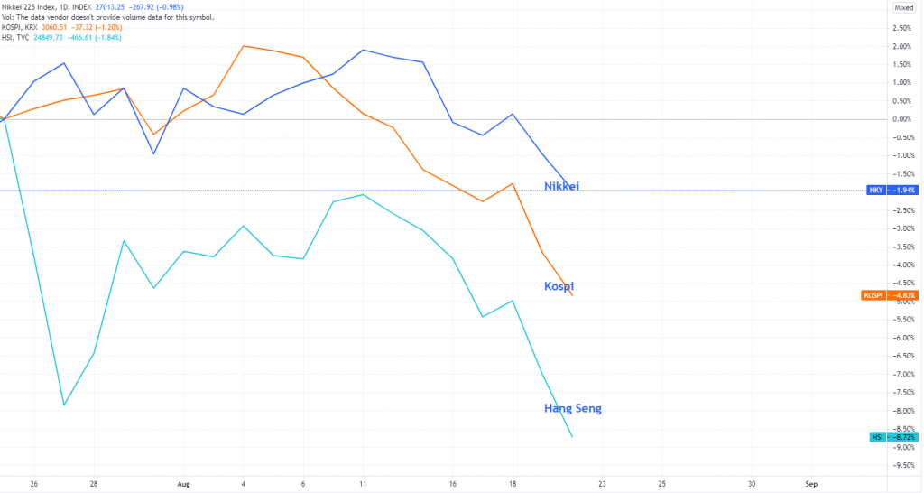 Review dan Potensi Kerugian Yang Dialami 3 Bursa Utama Asia Periode bulan Agustus.