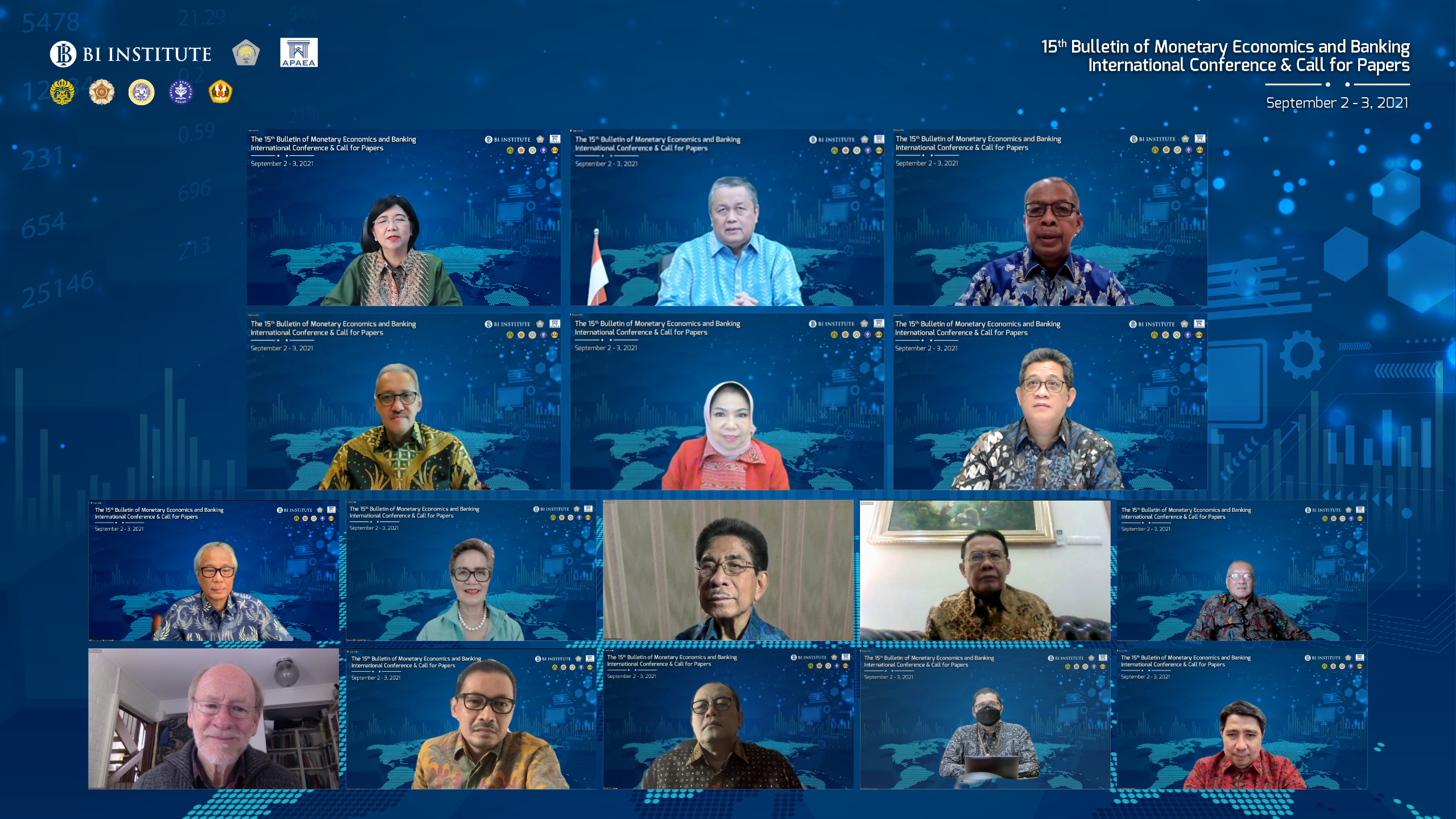Konferensi internasional BMEB dan call for papers yang diselenggarakan pada tanggal 2-3 September 2021 menjadi ajang bertemunya para peneliti berbakat dari berbagai belahan dunia. Konferensi internasional BMEB dan call for papers tahun ini mempresentasikan 53 dari 200 karya tulis ilmiah terbaik di bidang ekonomi, moneter dan keuangan baik dari dalam maupun luar negeri.