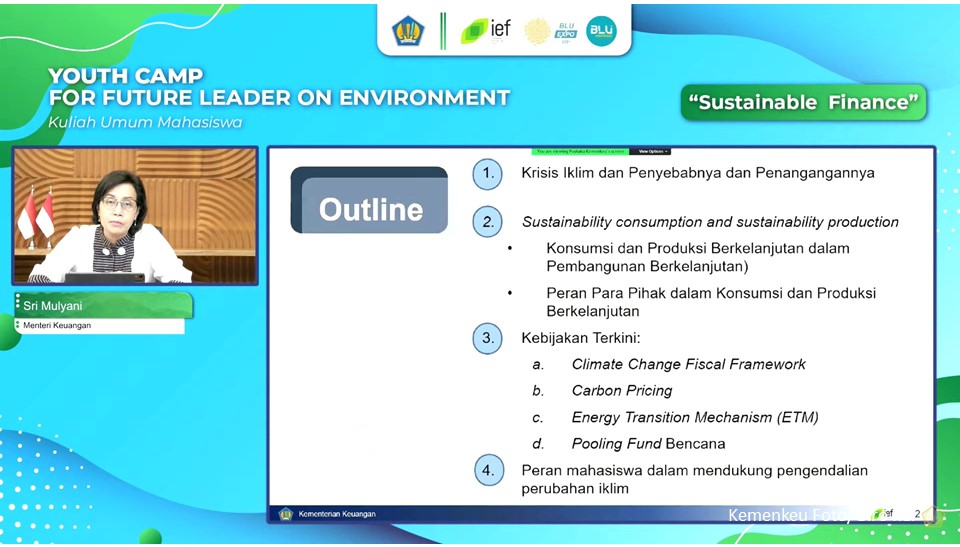 “Indonesia baru dan semua dunia sedang menghadapi Covid. Bagaimana caranya kita bisa memulihkan ekonomi, menyejahterakan rakyat, tapi kita tetap bisa bersama-sama juga bisa meng-address isu mengenai climate change,” ujar Menkeu.