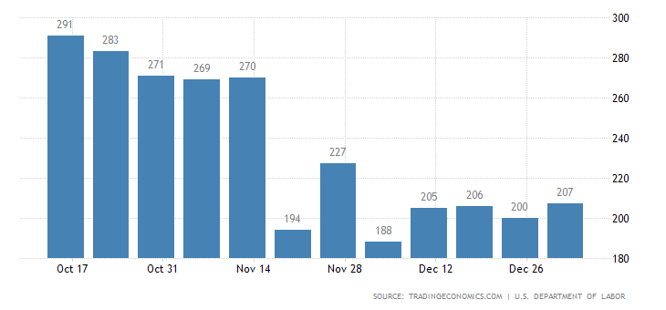 Klaim pengangguran mencapai 207.000 untuk pekan yang berakhir 1 Januari, sedikit lebih tinggi dari perkiraan 195.000 dan naik 7.000 dari periode sebelumnya.