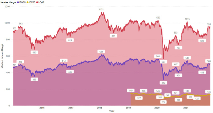 Kinerja perusahaan selain dapat diukur melalui harga saham dapat diukur melakui kecepatan transaksi jual beli saham dan besarnya nilai kapitalisasi yang didukung oleh baiknya fundamental perusahaan. Ketiga kriteria tersebut dibedakan dalam tiga kelompok menurut jumlah perusahaannya dengan tiga jenis indeks likuiditas diantaranya Indeks 30, Indeks 80 dan Indeks LQ 45. Berdasarkan 30 perusahaan dengan likuiditas terbesar, pada awal masa pandemi harga saham menurun hingga 567 per lembar saham, akan tetapi untuk kelompok 45 perusahaan dengan likuiditas terbesar berada pada harga 312 per lembar. Sementara itu indeks liquiditas 80 perusahaan baru rilis pada awal tahun 2019.