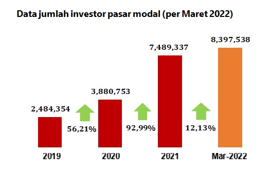 (Vibiznews – IDX) Memasuki akhir Triwulan 1 tahun 2022, jumlah investor pasar modal Indonesia yang tercatat di PT Kustodian Sentral Efek Indonesia (KSEI) telah menembus 8,3 juta atau meningkat 12,13% dari posisi akhir tahun 2021 lalu. Data per akhir Maret juga menunjukkan bahwa investor Gen Z memilih berinvestasi di saham industri keuangan.