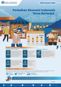 (Vibiznews – Economy & Business) – Bank Indonesia menilai perbaikan ekonomi Indonesia terus berlanjut seiring dengan meningkatnya mobilitas masyarakat di tengah peningkatan ketegangan geopolitik Rusia-Ukraina. Berdasarkan data Badan Pusat Statistik (BPS), tercermin pertumbuhan ekonomi triwulan I 2022 tetap kuat, yakni 5,01% (yoy), tidak jauh berbeda dengan capaian triwulan sebelumnya 5,02% (yoy). Kinerja positif ini didorong oleh peningkatan permintaan domestik dan tetap terjaganya kinerja ekspor. Perbaikan ekonomi nasional terjadi pada mayoritas lapangan usaha serta seluruh wilayah.