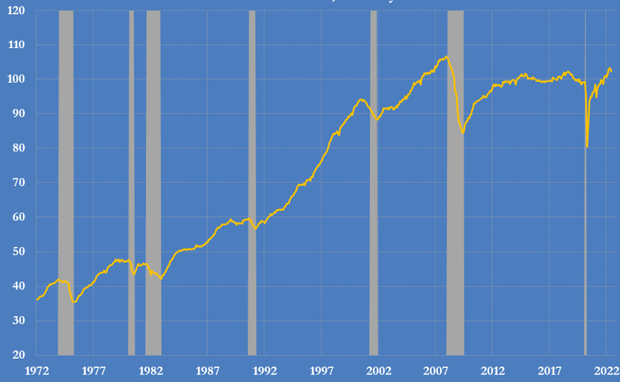 Indeks Aktivitas Nasional Federal Reserve Bank of Chicago (CFNAI) melacak semua indikator ini dan lusinan lainnya untuk memperkirakan apakah ekonomi tumbuh di atas atau di bawah tingkat tren jangka panjangnya.