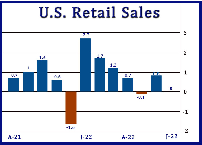 Departemen Perdagangan AS melaporkan penjualan ritel AS datar dan hampir tidak berubah di bulan Juli, setelah naik 0,8 persen bulan sebelumnya.