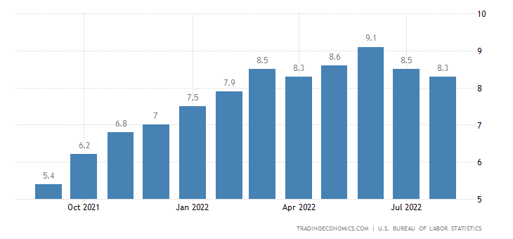Tingkat inflasi secara tahunan di AS turun untuk bulan kedua berturut-turut menjadi 8,3% pada Agustus 2022 dari 8,5% pada Juli.