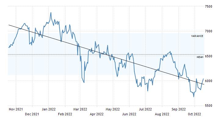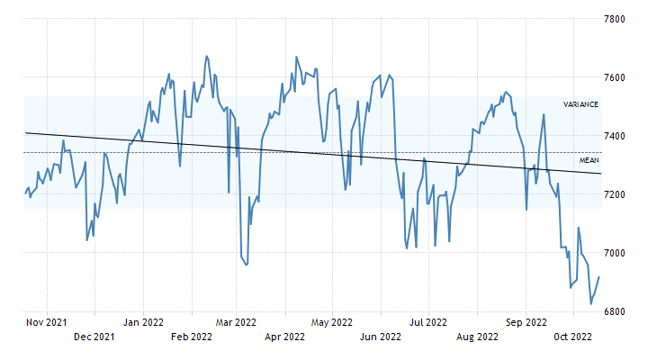 Indeks FTSE 100 hingga 17 Oktober 2022 ini mengalami pelemahan -4,37%, dan menuju akhir tahun 2022 diperkirakan mengalami tren bearish.