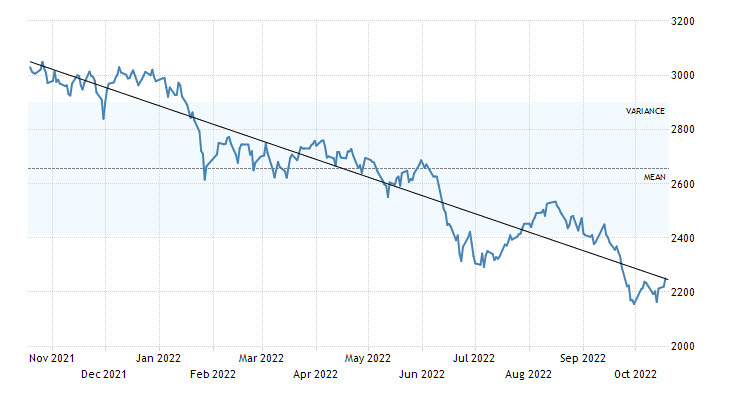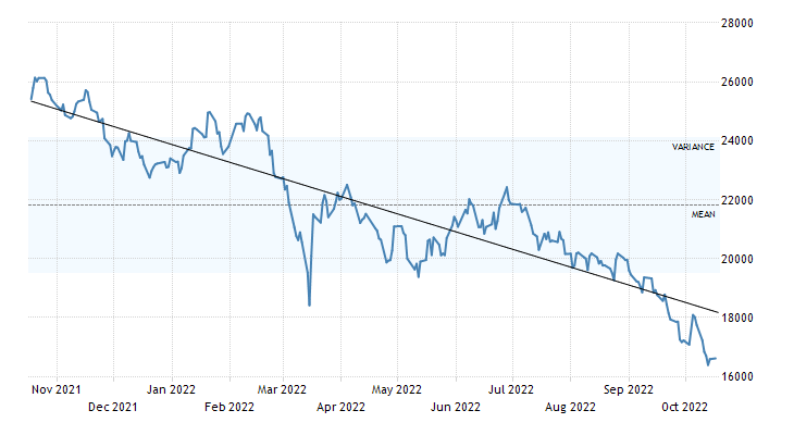 Indeks Hang Seng hingga 17 Oktober 2022 ini mengalami pelemahan -34,62%, dan menuju akhir tahun 2022 diperkirakan mengalami tren bearish.