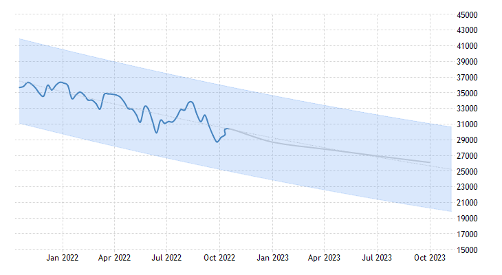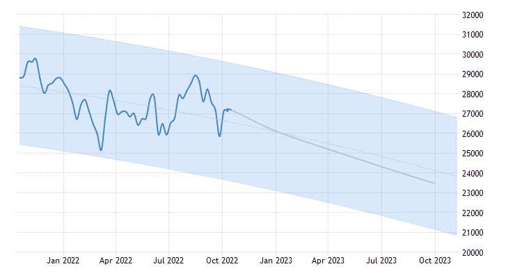 Indeks Dow Jones hingga 17 Oktober 2022 ini mengalami pelemahan -15,15%, dan menuju akhir tahun 2022 diperkirakan mengalami tren bearish.