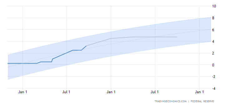 Seiring dengan kenaikan suku bunga besar-besaran, pejabat Fed mengisyaratkan niat untuk terus menaikkan hingga tingkat dana mencapai “tingkat terminal”, atau titik akhir 4,6% pada tahun 2023.