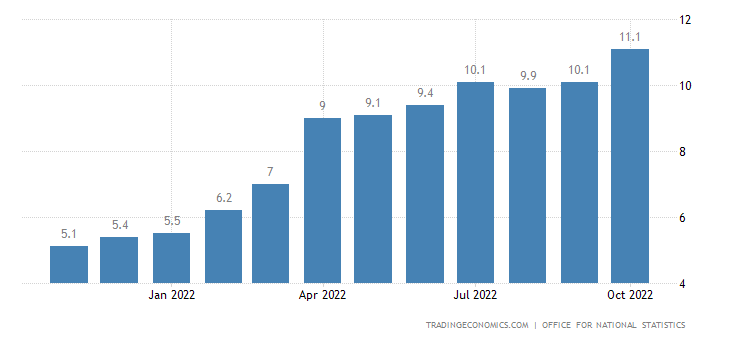 (Vibiznews – Economy & Business) Tingkat inflasi tahunan di Inggris melonjak menjadi 11,1% pada Oktober 2022 dari 10,1% pada September, jauh lebih tinggi dari perkiraan pasar sebesar 10,7%.