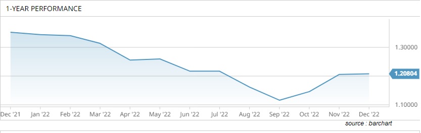 (Vibiznews – Forex) Poundsterling Inggris mengakhiri tahun 2022 hampir 11% lebih rendah pada $1,2, tahun terburuk sejak pemungutan suara Brexit pada tahun 2016, di tengah suasana hati-hati mengenai prospek ekonomi untuk tahun 2023, ketidakpastian politik, dan ketika Fed yang hawkish mengirim USD lebih tinggi.