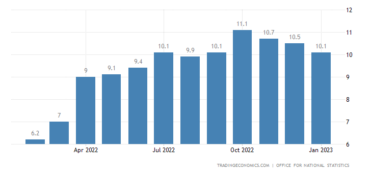 (Vibiznews – Economy & Business) Tingkat inflasi tahunan di Inggris turun menjadi 10,1% pada Januari 2023 dari 10,5% pada Desember, di bawah perkiraan pasar 10,3%.