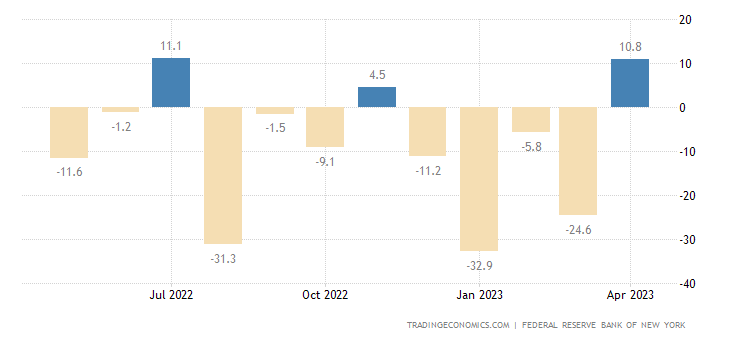 (Vibiznews – Economy & Business) Indeks Manufaktur Empire State New York secara mengejutkan melonjak menjadi 10,8 pada April 2023 dari -24,6 pada Maret, mengalahkan perkiraan pasar -18.