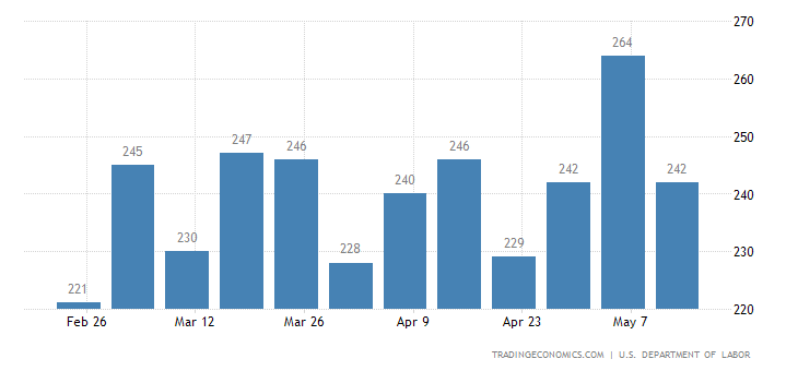 (Vibiznews – Economy & Business) Jumlah orang Amerika yang mengajukan tunjangan pengangguran turun menjadi 242 ribu dalam pekan yang berakhir 13 Mei, turun dari level tertinggi 18 bulan sebesar 264 ribu dan di bawah ekspektasi pasar sebesar 254 ribu.