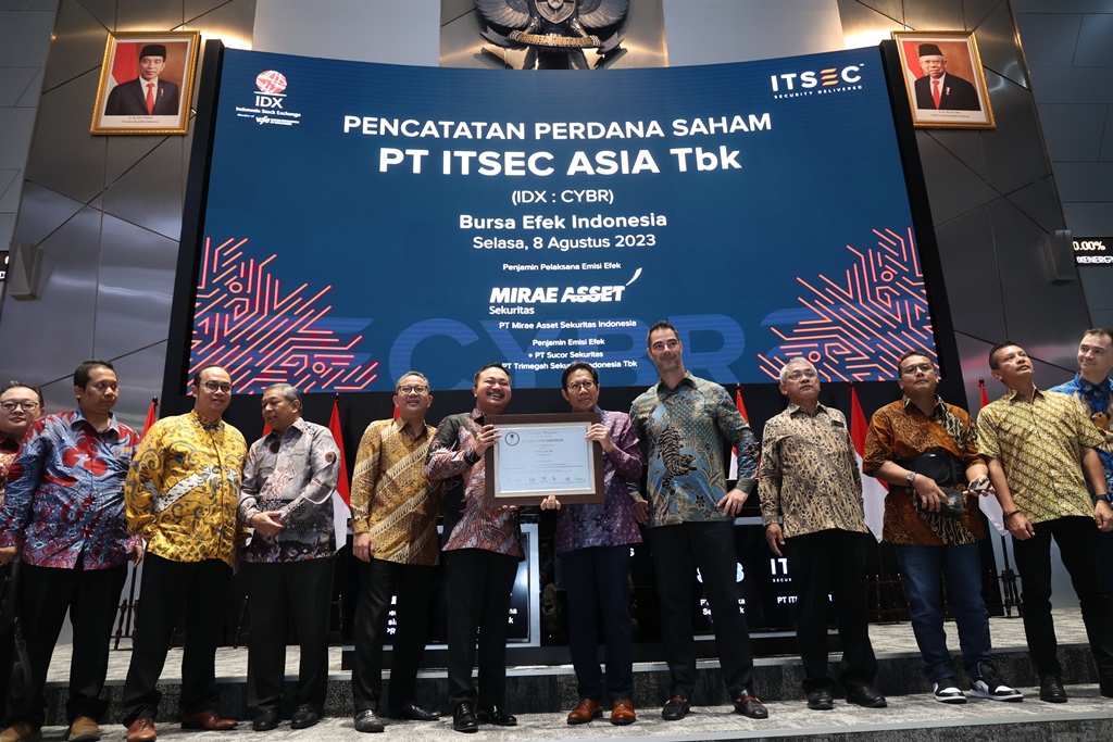 (Vibiznews – IDX) Pada hari ini, saham dari PT ITSEC Asia Tbk (“Perseroan”) dengan kode emiten “CYBR” secara resmi telah tercatat dan diperdagangkan pada Papan Pengembang Bursa Efek Indonesia (BEI). Melalui Penawaran Umum Perdana Saham (IPO) yang digelar pada 18 Juli 2023 lalu, Perseroan telah menawarkan 1.008.734.800 (satu miliar delapan juta tujuh ratus tiga puluh empat ribu delapan ratus) lembar saham dan berhasil menghimpun dana sebesar Rp 100.837.480.000 (seratus miliar delapan ratus tiga puluh tujuh juta empat ratus delapan puluh ribu rupiah).