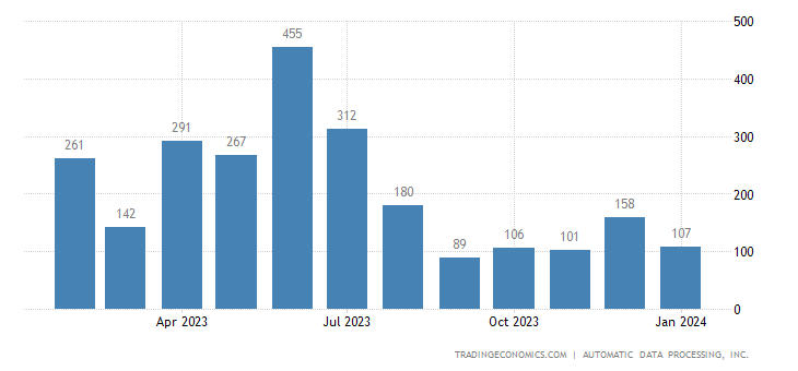 (Vibiznews – Economy & Business) Perusahaan swasta di AS mempekerjakan 107 ribu pekerja pada bulan Januari 2024, di bawah angka yang direvisi turun sebesar 158 ribu pada bulan Desember dan perkiraan sebesar 145 ribu.