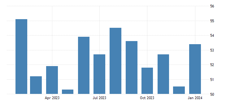 PMI Jasa ISM AS melonjak menjadi 53,4 pada bulan Januari 2024 dari 50,5 pada bulan Desember, mengalahkan perkiraan sebesar 52.
