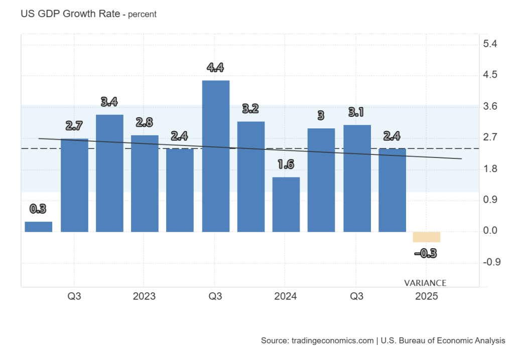 Ekonomi AS mengalami kontraksi pada tingkat tahunan sebesar 0,3% pada kuartal pertama tahun 2025, menandai penurunan pertama sejak kuartal pertama tahun 2022. Ini merupakan pembalikan tajam dari pertumbuhan 2,4% pada kuartal sebelumnya dan berada di bawah ekspektasi pasar sebesar 0,3%, menurut estimasi awal.