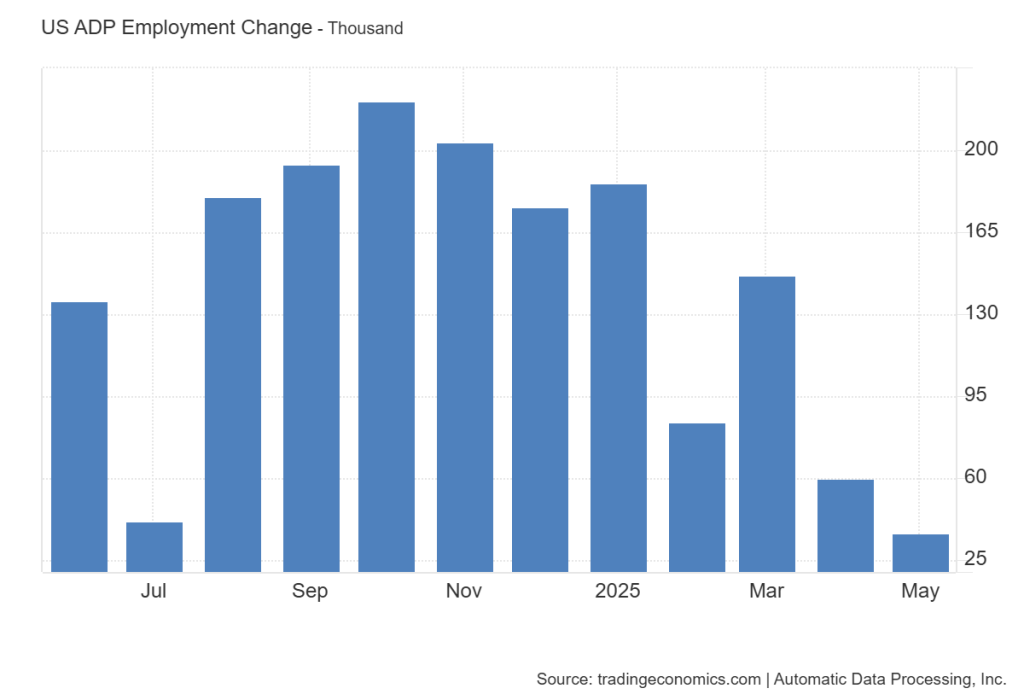 ADP melaporkan lapangan kerja sektor swasta meningkat sebanyak 37.000 pekerjaan pada bulan Mei setelah naik sebanyak 60.000 pekerjaan pada bulan April.