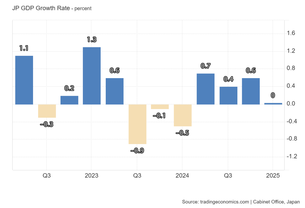 PDB Jepang datar atau berada di posisi 0 pada Q1-2025, melampaui estimasi awal yang kontraksi 0,2% tetapi melambat tajam dari pertumbuhan 0,6% pada Q4-2024.