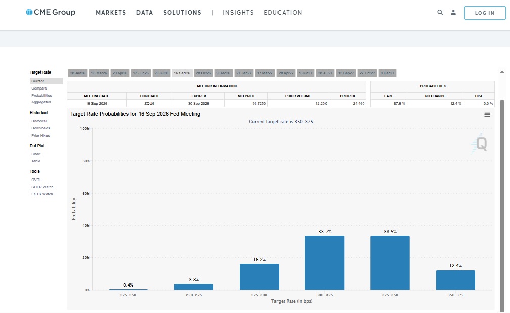 Berdasarkan proyeksi CME per tanggal 11 Januari 2026 ini, maka dari 8 kali pertemuan The Fed, diproyeksikan terjadi pemangkasan suku bunga sebanyak 5 kali, yaitu pada pertemuan 17 Juni 2026, 29 Juli 2026, 16 September 2026, 28 Oktober 2026 dan 9 Desember 2026.