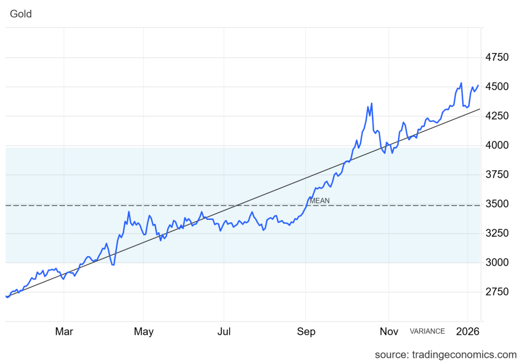 - Trading Economics memproyeksikan kenaikan harga emas sepanjang tahun 2026