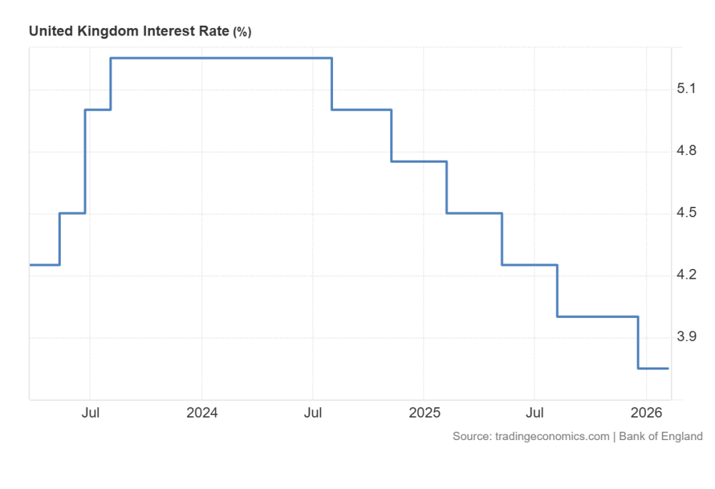 Sebagai informasi, suku bunga Bank of England telah dikurangi sebesar 150 basis poin sejak Agustus 2024, menurunkan pembatasan kebijakan.